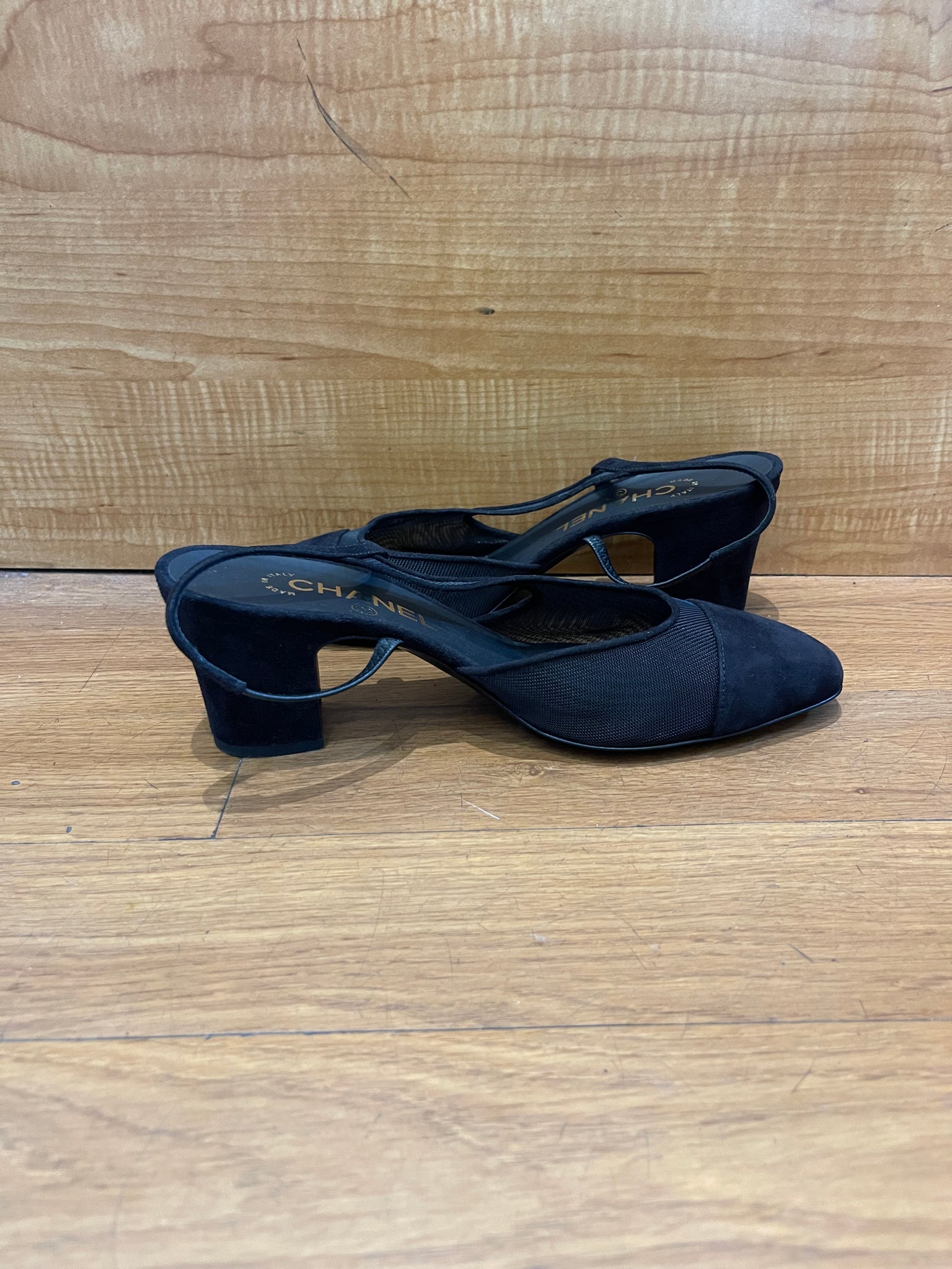 Chanel Interlocking CC Logo Suede Slingback Pumps