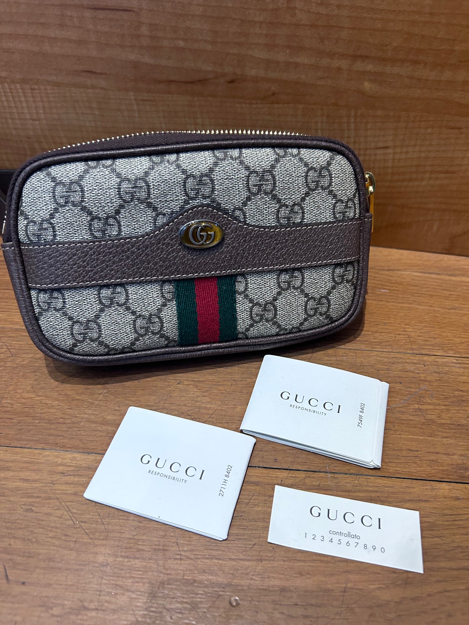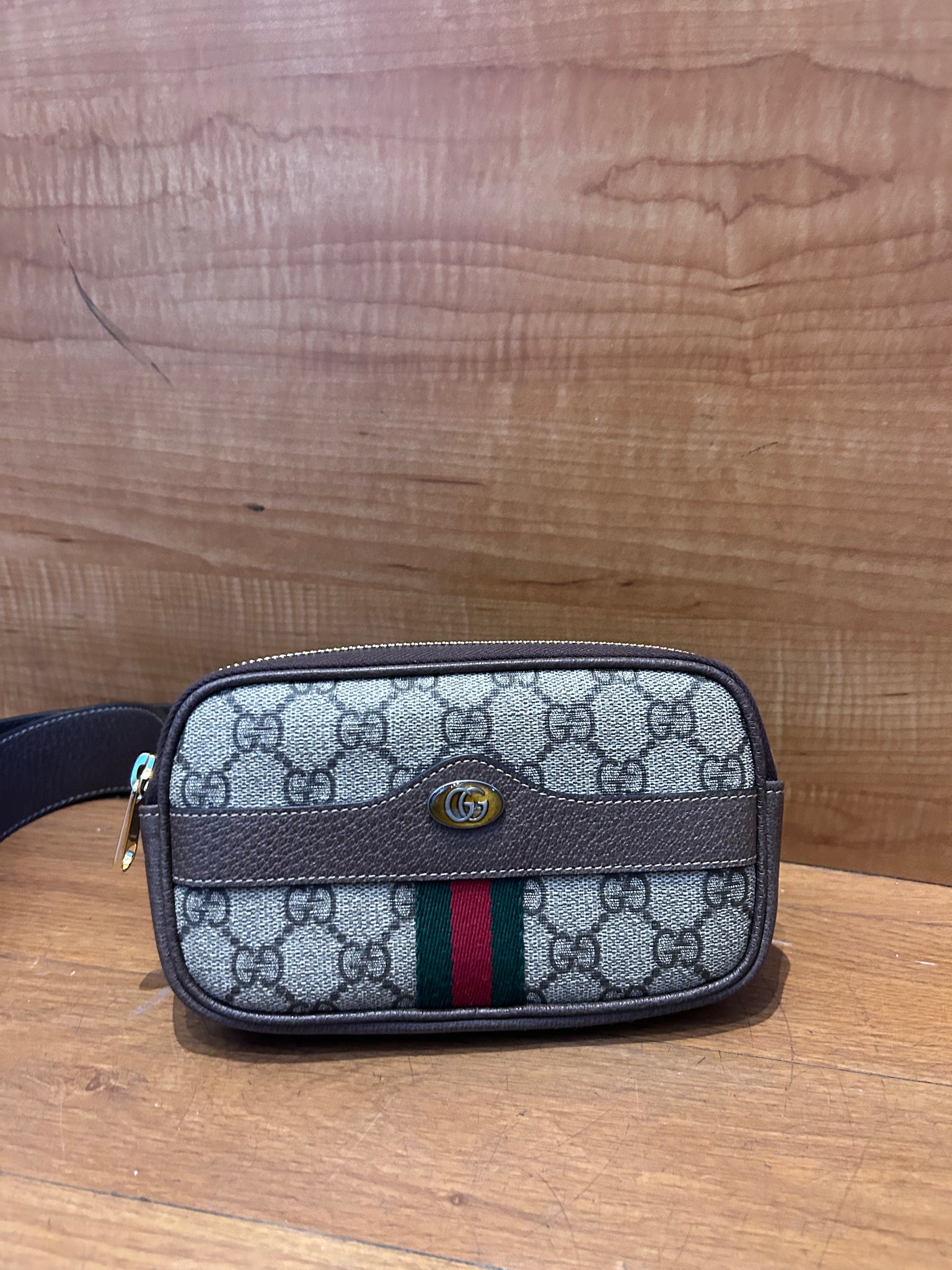 GUCCI Beige Ebony GG Supreme Canvas Small Ophidia Belt Bag